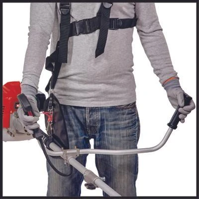 Die Benzin-Sense GC-BC 30/1 I AS ist ein leistungsstarkes Gerät, mit dem sich auch hartnäckiger Bewuchs in schwer zugänglichen Gartenbereichen mühelos in den Griff bekommen lässt. Die nötige Power dafür liefert der hochwertige, vibrationsarme 2-Takt-Motor mit beidseitig gelagerter Kurbelwelle. Dank digitaler Zündung wird eine schnelle und dynamische Gasannahme gewährleistet und ein stabiler Motorlauf garantiert. Alle Bedienelemente der Sense sind gut erreichbar am universell einstellbaren Aluminium-Zweihandgriff in Bikehandle-Ausführung untergebracht, so dass sich die Sense sehr komfortabel und präzise führen lässt. Für fachgerechtes Mähen kann die GC-BC 30/1 I AS wahlweise mit Messer oder Fadenspule bestückt werden. Ein 3-Zahn-Messer und eine Doppelfadenspule mit Tippautomatik sind im Lieferumfang enthalten. Die GC-BC 30/1 I AS verfügt über einen stabilen Führungsholm aus Aluminium, der hoher Beanspruchung standhält. Ihr Quick-Start-System mit gut erreichbarem Primer und Auto-Choke ermöglicht ein schnelles und bequemes Starten des Gerätes. Für die nötige Arbeitssicherheit sorgt die Fliehkraftkupplung, die das Schneidwerkzeug im Leerlauf auskuppelt. Der Komfort-Tragegurt gewährleistet angenehmes Arbeiten. Für einfachen Transport und platzsparende Aufbewahrung lässt sich die Sense dank Split Shaft mit wenigen Handgriffen in zwei Teile zerlegen.