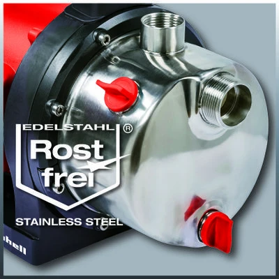 Die Einhell Gartenpumpe GC-GP 1046 N für ambitionierte Hobbygärtner ist die intelligente Lösung, einerseits Haushaltswasser zu sparen und andererseits dennoch bequem das heimische Grün zu pflegen. Regenwasser gilt als bestes Wasser für Pflanzen: Ohne keimtötende Zusätze, ohne Kalk und den Temperaturen angepasst, schlägt es Leitungswasser in allen Belangen um Längen. In Regentonnen oder einer Zisterne gesammelt, steht mancher Hobbygärtner vor der Frage: Wie verwenden, ohne ständiges Kannen schleppen? Die Lösung: eine Gartenpumpe, robust und mit Leistung. Die Einhell GC-GP 1046 N verfügt über die speziellen Feinheiten, die ein Hobbygärtner schnell zu schätzen wissen wird. Die Pumpe mit Ein-/Aus-Schalter verfügt über eine sehr hohe Saugkraft sowie Druck- und Förderleistung, so dass auch bei größerer Entfernung noch mit entsprechendem Druck gearbeitet werden kann. Mit ihrem 1.050 Watt starken Motor fördert die Gartenpumpe stündlich bis zu 4.600 Liter Wasser. Der wartungsfreie Elektromotor verfügt über einen thermischen Überlastschutz. Für ein langes Arbeitsleben ist die Gartenpumpe von Einhell mit einem hochwertigen INOX Edelstahl-Pumpengehäuse und stabilen Metallgewinden sowohl an der Saug- als auch Druckseite ausgerüstet. Die hochwertige Gleitringdichtung ist im täglichen Leben für hohe Ansprüche geeignet und sorgt für eine lange Lebensdauer. Die Gartenpumpe ist benutzerfreundlich konzipiert: Für eine einfache Inbetriebnahme ist eine separate Wassereinfüllschraube installiert, eine Wasserablassschraube ermöglicht eine ebenso einfache Restwasserentleerung. Ein praktischer Tragegriff am Gehäuse ermöglicht die Pumpe genau dort einzusetzen, wo sie gebraucht wird – auch an mehreren Wasserstellen auf dem Gelände. Für einen festen Platz ist ein stabiler Pumpenfuß mit Bohrungen zum einfachen Befestigen angebracht.
