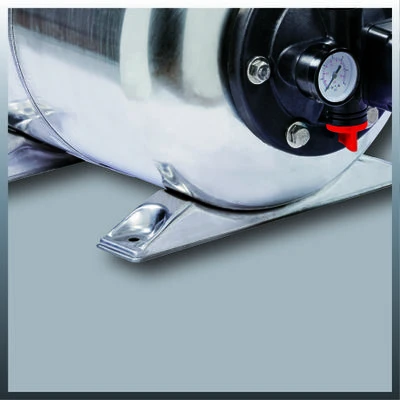 Das Einhell Hauswasserwerk GC-WW 1250 NN ist eine benutzerfreundliche Alternative zum kostenintensiven Leitungswasserverbrauch und hilft konkret bares Geld zu sparen. Es ist die effiziente Lösung zur Förderung von Klarwasser aus Reservoirs, Schächten, Brunnen oder Zisternen für den internen Hausgebrauch und den Einsatz im Garten nutzbar zu machen. Das Hauswasserwerk von Einhell besteht aus einer Wasserwerk-Jet-Pumpe mit Ein- und Ausschalter und einem hochwertigen INOX Edelstahl-Pumpengehäuse. Die leistungsstarke Pumpe verfügt über eine sehr hohe Saugkraft sowie eine entsprechend intensive Druck- und Förderleistung. Mit seinem 1.200 W starken Motor fördert das Wasserwerk bis zu 5.000 Liter stündlich. Der wartungsfreie Elektromotor ist mit einem thermischen Überlastschutz ausgerüstet. Der Edelstahldruckkessel verfügt über ein Behältervolumen von 20 Liter, ein gut sichtbares Manometer zum Messen des Drucks ist integriert. Das Brauchwasser im Haus oder im Garten steht durch das Hauswasserwerk stets zur Verfügung und wird mit konstantem Druck gehalten. Der Druckschalter zur Steuerung reguliert die Druckunterschiede automatisch. Die hochwertige Gleitringdichtung sorgt für eine lange Lebensdauer. Für eine einfach Inbetriebnahme ist eine separate Wassereinfüllschraube installiert, eine Wasserablassschraube ermöglicht eine bequeme Restwasserentleerung. Der stabile Pumpenfuß mit Bohrungen ist einfach zu befestigen.