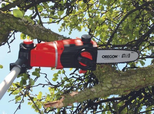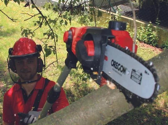 Das Akku-Multifunktionswerkzeug GE-HC 18 Li T Kit ist ein leistungsstarkes Gerät, mit dem sich höher gelegene Äste und hohe Hecken mühelos und stromnetzunabhängig vom Boden aus beschneiden lassen. Durch das Power X-Change Batteriesystem von Einhell verfügt das Multitool über einen 18 V Akku mit 3,0 Ah für ausgedehnte Arbeitseinsätze. Dabei sorgt das Metallgetriebe für hohe Langlebigkeit und das OREGON-Qualitätsschwert und die OREGON-Kette für saubere Schnittresultate. Der um 90° drehbare Aufsatz sorgt dabei für mühelose Horizontalschnitte. Der Krallenanschlag verhindert dabei ein Abrutschen beim Sägen. Die automatische Kettenschmierung über einen Ölbehälter versorgt die OREGON-Kette mit der nötigen Schmierung. Bei Bedarf kann sie mit der praktischen Kettenspannung werkzeuglos gespannt und gewechselt werden. Ein Kettenfangbolzen verhindert dabei zuverlässig das ungewollte Abrutschen der Kette vom Schwert. Die aus lasergeschnittenem und diamantgeschliffenem Stahl gefertigten Messer sorgen für saubere Schnittresultate. Im stabilen Köcher lässt sich die Heckenschere sicher und bequem transportieren und verstauen. Der Akku verfügt über eine Akku-Füllstandanzeige mit drei LEDs, auf der sich der aktuelle Ladezustand auf einen Blick ablesen lässt. Der Akku kann zudem für sämtliche Geräte der Power X-Change Familie verwendet werden. Zum Lieferumfang gehört ein zusätzliches Schnellladegerät, mit dem der Akku innerhalb 1 Stunde wieder vollständig geladen werden kann. Der von 880 mm bis 1820 mm stufenlos arretierbare Teleskopstiel lässt sich passgenau auf die gewünschte Arbeitshöhe einstellen. Der ebenfalls stufenlos verstellbare Zusatzhandgriff wird mit dem praktischen Schnellverschluss auf jeden Anwender angepasst. Um auch schwierige Schnitte in der Höhe sauber und präzise ausführen zu können, lassen sich der Motorkopf 7-fach und der Hauptgriff 4-fach neigen und somit auf jede Arbeitssituation abstimmen.