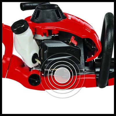 Die Benzin-Heckenschere GE-PH 2555 A ist ein äußerst kraftvolles, robustes Gerät, das sich bei der stromnetzunabhängigen Pflege von Hecken, Sträuchern und Büschen als unentbehrlicher Helfer erweist. Ihr vibrationsarmer Zweitakt-Motor stellt reichlich Kraftreserven zur Verfügung, um auch stärkere Zweige und Äste sauber zu schneiden. Das Quick-Start-System mit Primer und Auto-Choke ermöglicht auch nach längerer Betriebspause ein schnelles, müheloses Starten. Die GE-PH 2555 A ist mit drehbarem Handgriff ausgestattet und passt sich dadurch der jeweiligen Schneidesituation perfekt an und ermöglicht ergonomisches Arbeiten. Der großflächige Handschutz sorgt für die nötige Sicherheit und dank Anti-Vibrations-System und vibrationsgedämpftem Zusatzhandgriff lässt sich die Heckenschere komfortabel führen. Im Zusammenspiel mit der Fliehkraftkupplung sorgen ihre gegenläufigen, beidseitig schneidenden Sicherheitsmesser aus lasergeschnittenem und präzisionsgeschliffenem Spezialstahl für hervorragende Schnittresultate.