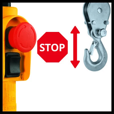 - Der Sicherheitsbügel am Lasthaken sorgt für sicheren Lasthub