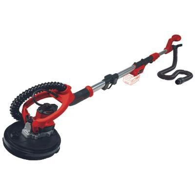 Der Einhell Professional Akku-Trockenbauschleifer TP-DW 18/225 Li – Solo ist ein leistungsstarkes, flexibles Mitglied der Power X-Change-Familie. Der Trockenbauschleifer ist bei Sanierungs- und Renovierungsarbeiten ein unverzichtbarer Helfer zum Abschleifen von Gips und Gips-Platten an Decken und Wänden. Die Drehzahl-Elektronik sorgt im Einsatz für material- und anwendungsgerechtes Arbeiten. Einfach in der Handhabung und komfortabel im Dauereinsatz ist der Akku-Trockenbauschleifer durch den Funktionsschalter mit Feststelltaste und die Softgrip-Oberflächen. Die integrierte Staubabsaugung gewährt einen sauberen Arbeitsbereich, der Bürstenkranz ist flexibel drehbar. Die federgelagerte Schleifplatte sorgt dabei für den optimalen Kontakt zur Wand oder zur Decke. Der Schleifteller ist mit Micro Hook- and Loop-Fastening ausgerüstet. Der klappbare Führungsholm macht den Transport einfach und den Trockenbauschleifer platzsparend in der Aufbewahrung, zudem ist die Aluminium-Verlängerung mit Zusatzhandgriff abnehmbar. Im Lieferumfang enthalten ist ein Verlängerungsschlauch mit integriertem Standfuß, ein Staubfangsack mit Schnellverschluss und Tragegurt sowie 6 Stück Schleifpapier, ein Gitterleinen und ein Adapter für den Anschluss eines geeigneten Staubsaugers. Die Lieferung erfolgt im praktischen Transportkoffer, jedoch ohne Akku und Ladegerät. Diese sind separat erhältlich.
